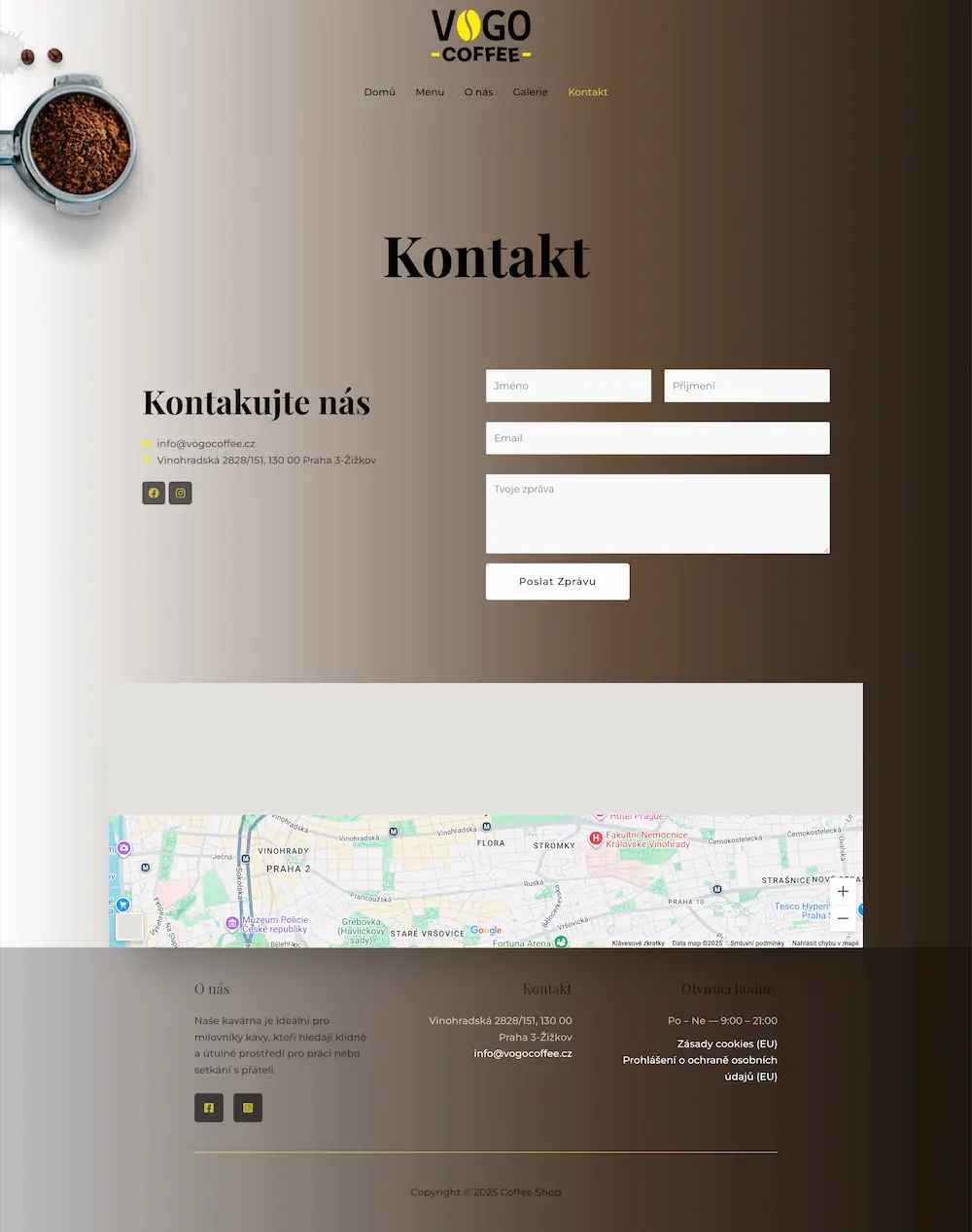 info@vogocoffee.cz, což zákazníkům usnadňuje domluvu a plánování návštěvy.